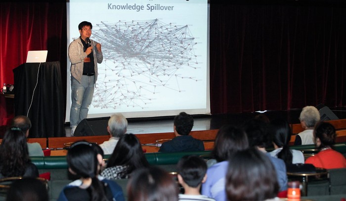| ▲뇌과학에서 얻은 삶의 통찰에 대해 강연하는 정재승 교수 |