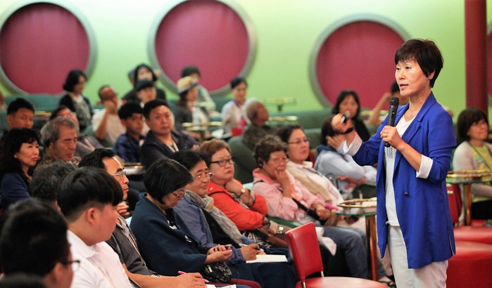 | ▲기후변화로 인한 재난 이야기를 들려주는 세계시민학교 한비야 교장 |
