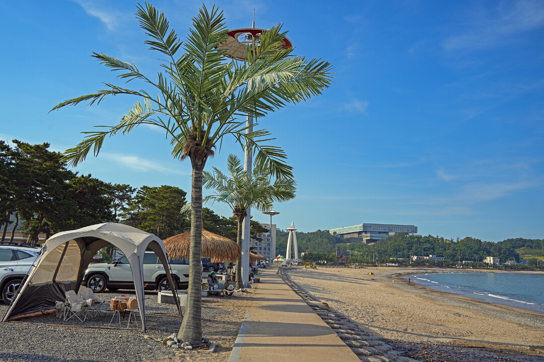나정고운모래해변은 편의성과 접근성이 좋아 차박 성지로 인기몰이 중이다. 해변 바로 앞에 넓은 주차장이 조성돼 있어 주차를 하고 바로 차박지를 꾸밀 수 있다.