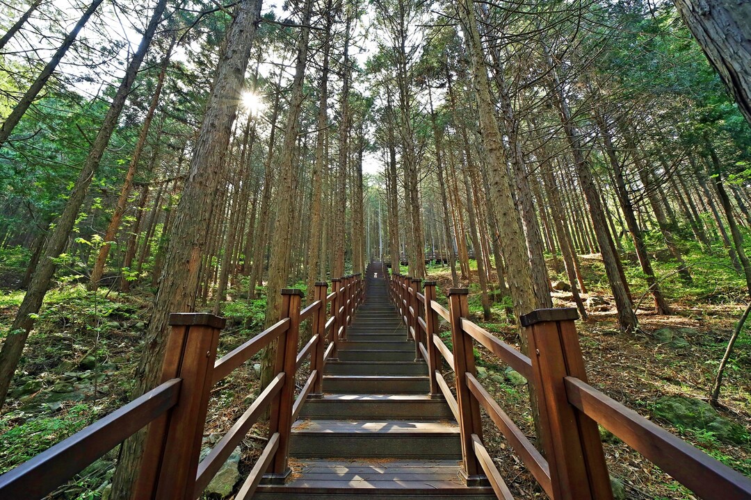 특히 10~20㎡의 다양한 크기의 목재 데크 사이트가 40면 조성돼 있다. 야외 물놀이장도 여름철엔 꼭 방문해 보자. 숙박 시설 이용객을 위한 편의시설로 7월 중순부터 8월 하순까지 약 한 달 동안 운영된다. 휴양림의 가장 큰 장점인 삼림욕과 숲길 트레킹은 필수 코스다.