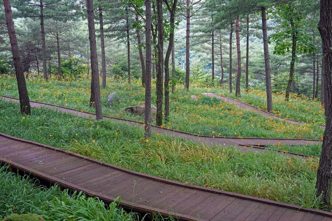 휴양림 곳곳에는 숲길 구간(A~D)과 삼림욕장이 있다. 양산 생각이 나지 않을 정도로 끊이지 않고 이어지는 나무 그늘은 걸음을 가볍게 해주고, 숲의 짙은 초록은 오감을 만족시켜 준다.