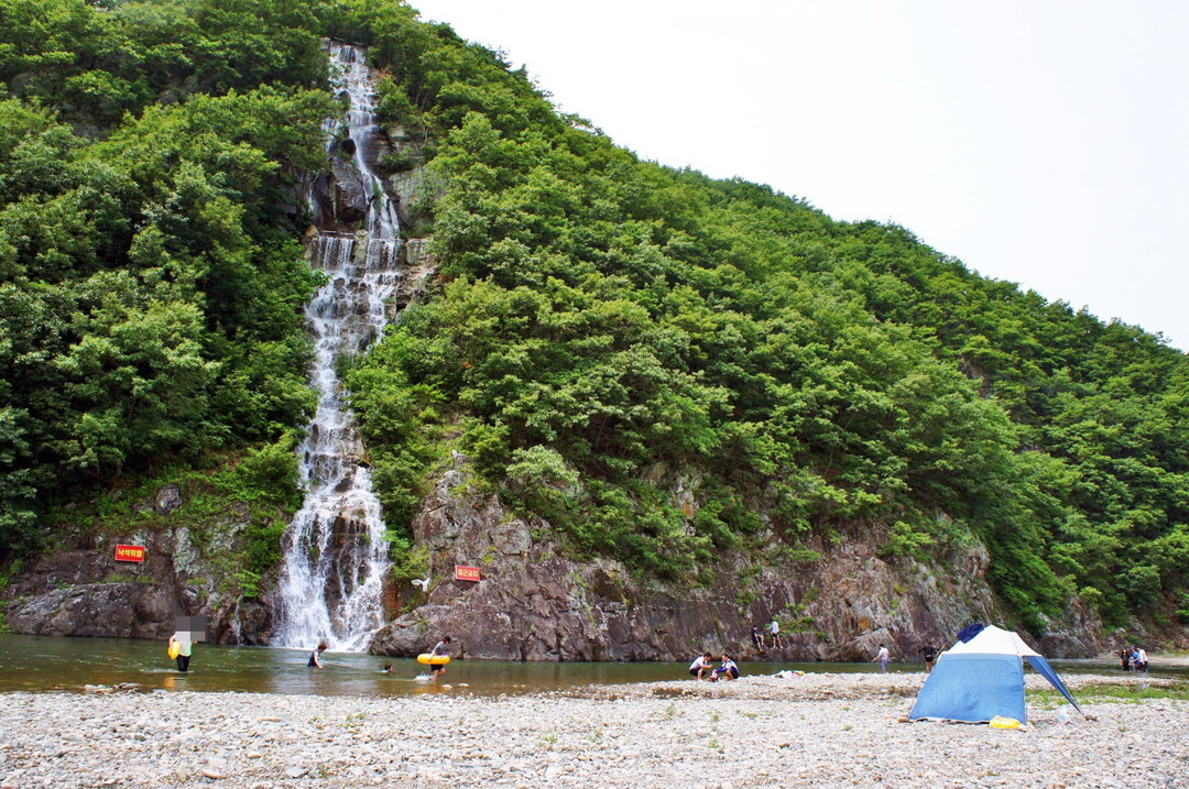 경주의 지붕 단석산과 이웃 산들을 넘고 넘어 산내면 동창천에 닿는다. 동창천은 산내면에서 발원해 경북 청도군까지 이어지는 하천이다. 산내면행정복지센터, 산내 전통시장과 멀지 않은 곳에 물놀이하기 좋은 스팟이 있다. 절벽에서 시원스레 물줄기가 쏟아지는 인공폭포인 '청룡폭포'가 조성된 동창천 둔치이다. 이곳 둔치에서 노지 야영이 가능하다.