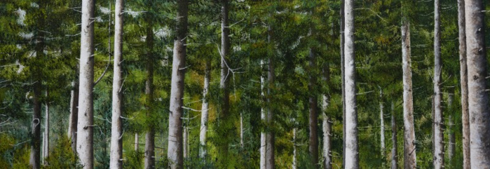 12월 4~10일 서울 인사동 갤러리H에서 열리는 전시회는 '가문비 숲에서'라는 제목의 100호 작품을 비롯, 아크릴로 그린 다양한 숲과 나무 그림만으로 채워져 있다.