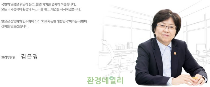 7월 5일 오전 김은경 제 17대 환경부 장관의 취임사를 통해 "환경에 대한 가치를 명확히 하고 소통과 협업을 강화해 지속가능한 대한민국을 만들어 가겠다."고 말했다.