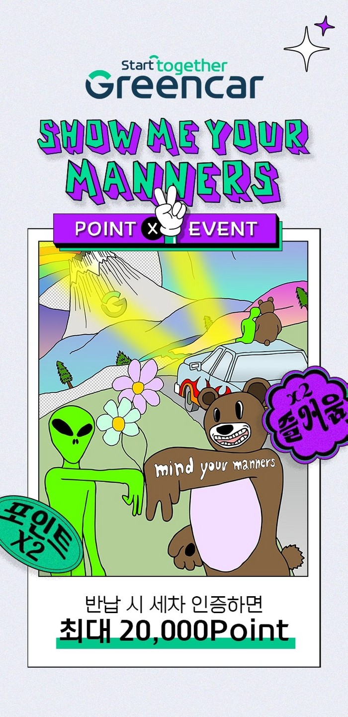 그린카는 캠페인 참여자들에게 편익을 제공함으로써 긍정적인 경험을 향상시켜 올바른 공유 문화 정착과 확산에 노력하고 있다. 카셰어링 이용 시 차를 깨끗하게 사용하는 이용자에게 추가 혜택을 제공하는 세차 인증 프로그램을 운영 중이다. 이번 캠페인의 일환으로 10월 31일까지 세차 인증 시 기존 포인트의 2배를 적립해주는 이벤트를 진행한다.