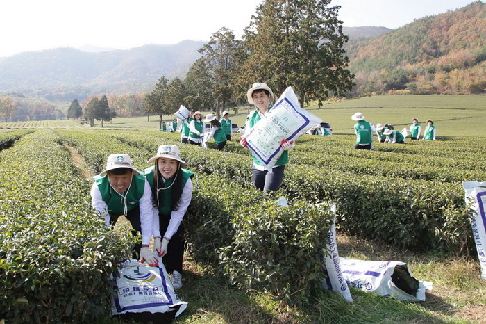 지난 14일 보성군, 한국차중앙협의회, 자원순화사회연대, 보성 차 재배 농가 관계자들과 보성의 차 재배 농가에 2만 8000포대의 친환경 커피 퇴비를 지원하는 전달식을 가졌다.