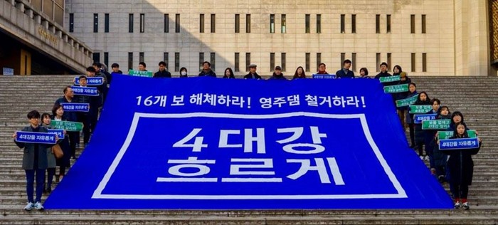 22일 한국환경회의와 4대강재자연화시민위원회는 세종문화회관 앞에서 금강, 영산강 보 완전 해체를 촉구하는 기자회견을 가졌다.