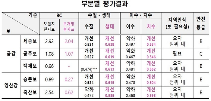 이번 발표는 지난해 8월 환경부에 꾸려진 '4대강자연성회복을위한조사평가단' 결정으로 7월에 구성되는 '국가물관리위원회'에서 최종 확정됐다.
