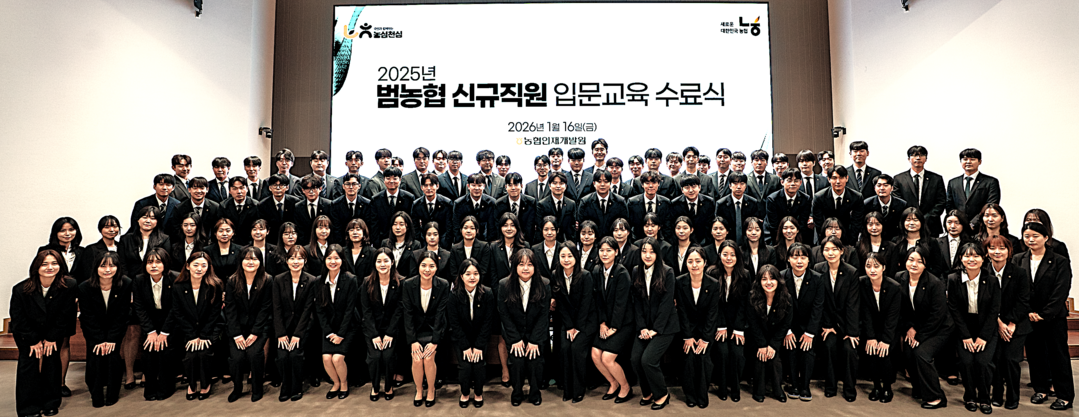 농협은 16일 중앙교육원, 청주교육원, 세종교육원 등 3개 교육원에서 2025년 12월 22일 채용된 범농협 신규직원 236명(중앙회·은행·생명·손해 191명, 기타 계열사 45명)을 대상으로 수료식을 개최했다.