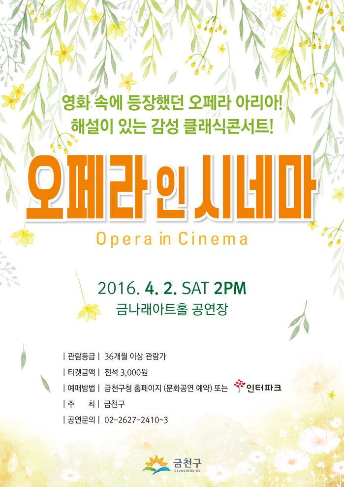 관람을 희망하는 주민은 금천구청 홈페이지 및 인터파크에서 예매가 가능하다. 관람료는 전석 3000원.