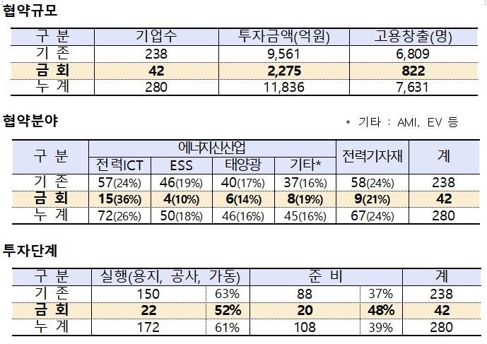 이번 협약 체결을 통해 한전은 당초 올해 목표였던 250개 투자유치 목표를 크게 상회해 누적 280개 기업과 에너지밸리 투자 협약을 체결, 투자금액 1조원 돌파(1조 1836억원) 및 7631명의 고용창출 효과를 달성했다.