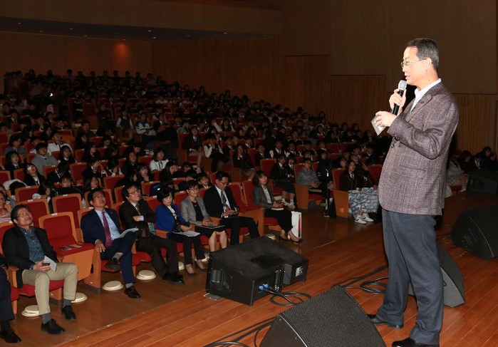 2000번째로 진행된 이 날 색동나래교실은 김수천 사장이 직접 강사로 나서 그 의미를 더했다. 김 사장은 행사장을 가득 메운 약 1200여명의 학생들에게 '내 삶을 이끌어 온 가장 큰 원동력'이라는 제목으로 특강을 진행, 자신의 경험을 토대로 한 평소의 소신과 생각을 밝혔다.