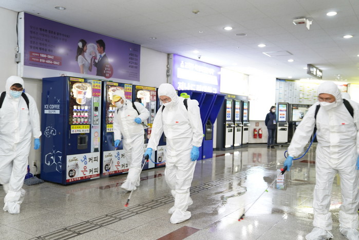 방역도 전쟁을 치르듯 진행되고 있다. 보건소 기동방역팀 43명, 행정복지센터 전용방역팀 91명 등 137명이 방역차량 5대, 방역분무기 85대 등을 동원해 다중이용시설, 종교시설, 공연장, 복지관, 재래시장 등 1361개소를 비롯해 시내 곳곳에 대한 방역을 지속하고 있다.