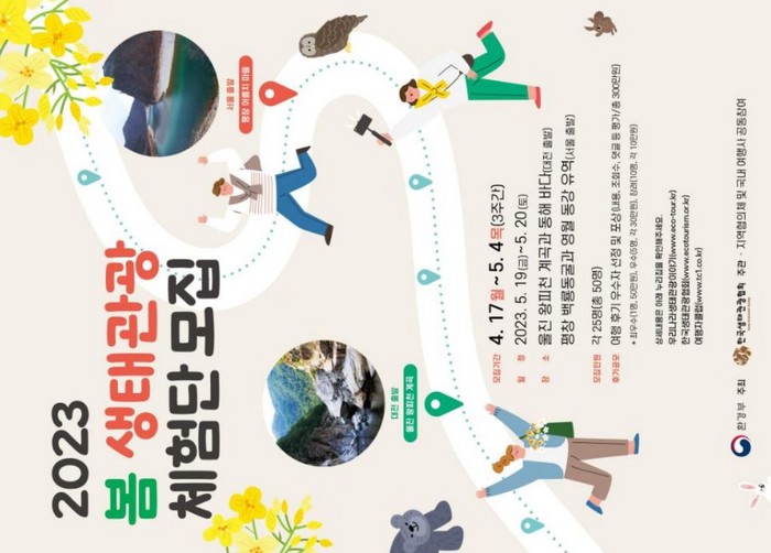 환경부는 평창군, 울진군 등 천혜의 생태관광지를 1박 2일 일정으로 체험해 볼 수 있는 '2023년 봄철 생태관광 체험단(50명)'을 4월 17일부터 5월 4일까지 모집한다.
