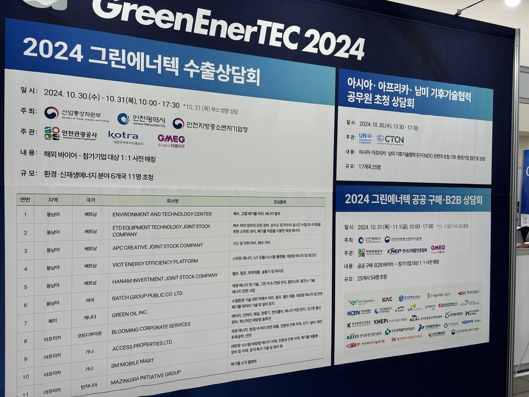 2024 그린에너텍(GreenEnerTEC 2024)이 인천 송도컨벤시아는 유정복 인천광역시장, 백현 인천관광공사 사장, 최계윤 인천환경공단 사장 등 각 기관장이 참석 분위기를 띄웠다.