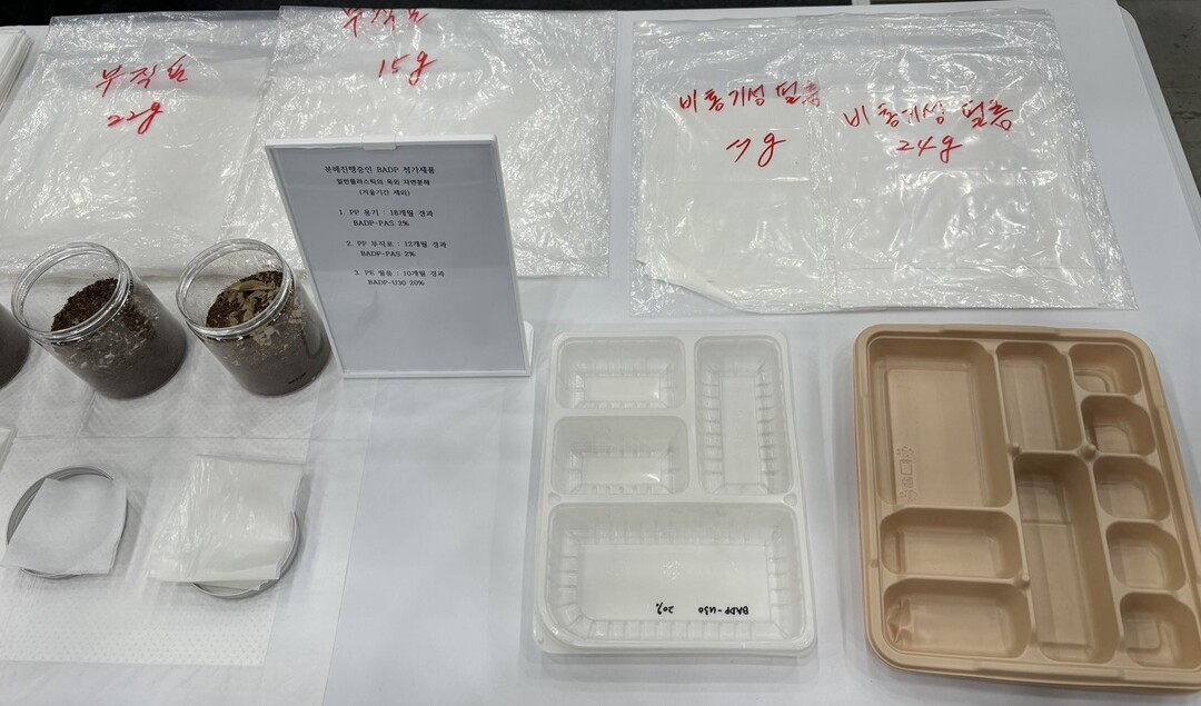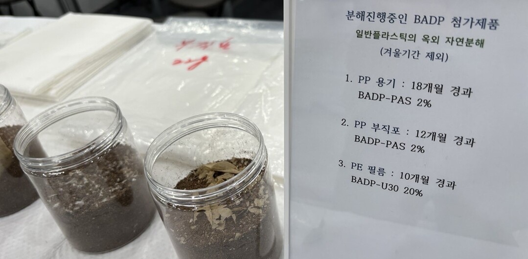 (주)BADP측은 기 개발된 석유화학 플라스틱 생분해 첨가제뿐만 아니라 PLA, PBAT 생분해 플라스틱의 58℃ 고온 분해(산업퇴비화 인증)조건을 28℃의 상온에서 분해(가정 퇴비화)가 가능하다고 바이어들에게 설명했다.