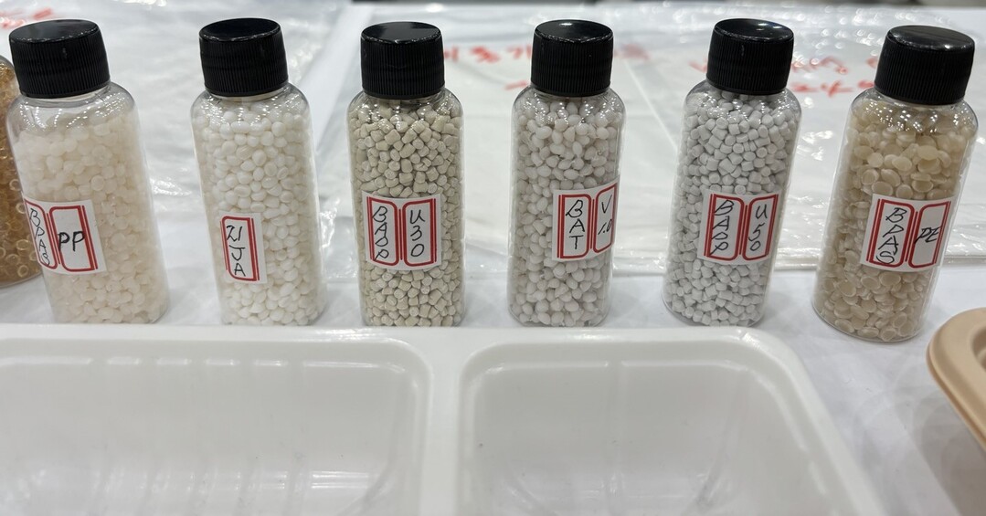 기존의 생분해 수지는 대부분 전분계열의 PLA(Poly Latic Acid)나 석유화학계열의 PBAT(Polybutylene Adipate Terephthalate)를 상호 보완물성으로 혼합해 만들어졌다.