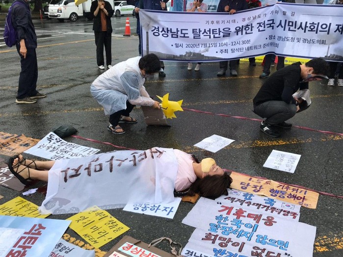 이 자리에서 이 단체들은 탈석탄 정책을 활발한 충남도와 경남도의 모습을 비교하는 퍼포먼스를 진행하기도 했다.