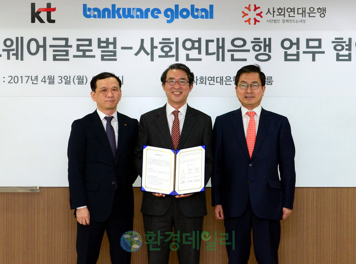 사회적금융 국내 대표 기관인 사회연대은행이 사회적금융과 관련된 전문 시스템 구축을 위해 3일 IT·금융 전문 기업인 KT, 뱅크웨어글로벌과 업무협약을 체결했다.