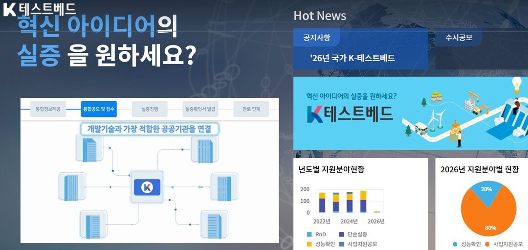 국가 K-테스트베드는 기술 개발부터 판로 지원까지 전주기를 아우른다. 기술 개발 분야는 참여기관 연구·실증 기반를을 활용한 R&D 공동 수행과 단순 실증 테스트, 성능 확인서 발급 등을 지원한다.