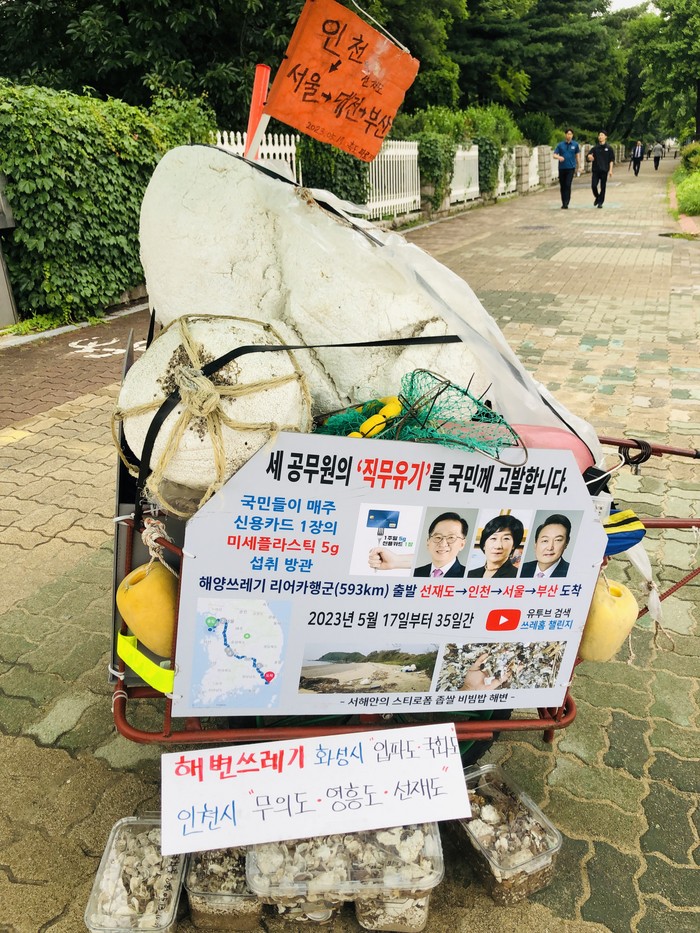 또 '쓰레홈 운동'을 국민적 추진으로 해달라고 코로나 해제되면서 모든 야외 공간마다 쓰레기는 넘치고 함부로 버리는데 시민들이 자신들이 버리는 쓰레기는 집으로 가져가 올바르게 분리수거하자는 취지라고 했다.