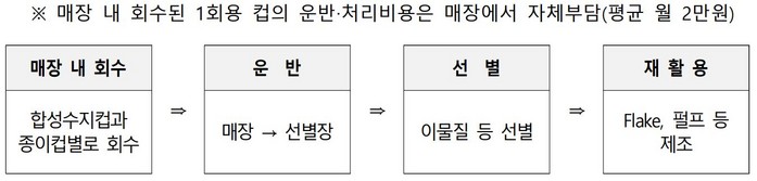처리지원금은 1회용 컵의 수집‧운반과 보관에 필요한 인건비 및 유류비, 임차료 등을 고려했다.