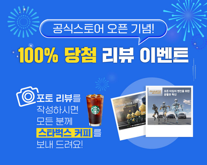 공식 쇼핑몰 오픈 기념으로 10월 한 달간 포토 리뷰를 작성하는 모든 고객에게 커피 교환권을 증정한다.