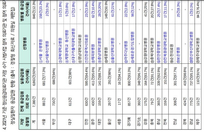 전국 응급의료 408개소 중 정신환자 병동 88곳