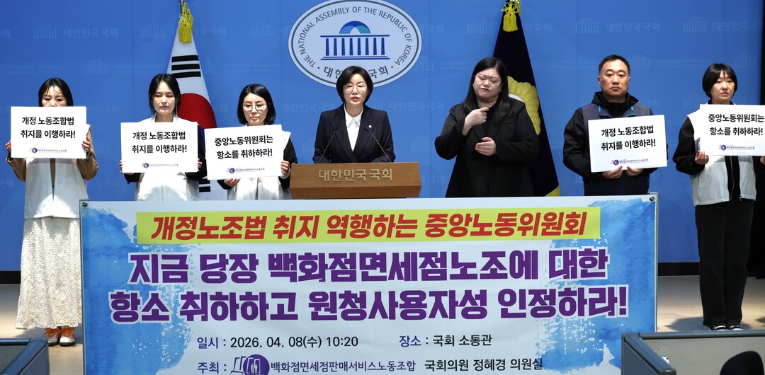 정혜경 의원은 백화점면세점판매서비스노조와 함께 국회 소통관에서 기자회견을 통해 개정 노동조합법 취지에 역행하는 중앙노동위를 규탄했다.