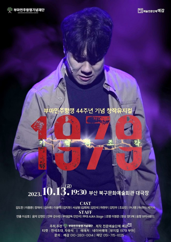 '1979 부마 기억의 조각'은 부마민주항쟁기념재단 주최, 전문예술단체 '예감'이 제작을 맡았다. 스탭과 배우 모두 부산에서 활동 중인 예술가들로 구성한 순수 '메이드 인 부산 뮤지컬'이다.