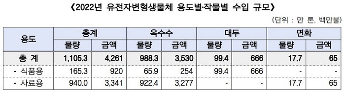 GMO농산물 수입량 5년간 1400만 톤 훌쩍 넘어