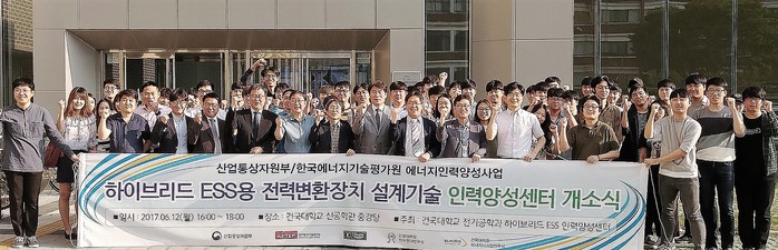 이번 사업에 따라 건국대 전기공학과는 최근 '하이브리드 ESS용 전력변환장치 설계기술 인력양성센터'를 설립하고 16일 교내 신공학관에서 개소식을 개최했다. 이번 사업은 건국대가 주관하고 효성과 LS등 15개 기업과 아주대, 포항공대가 참여한다.