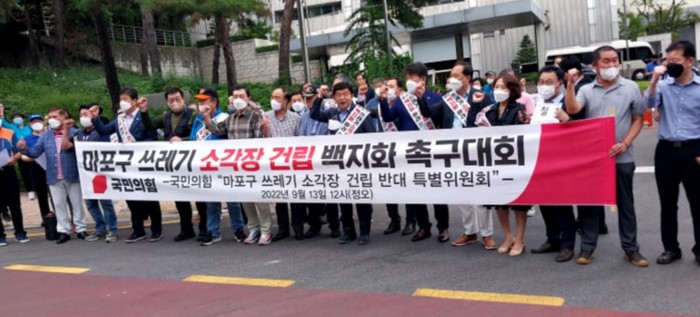 그러면서 "폐기물처리 관련 기피 시설이 1개소도 없는 서울시 자치구가 15개나 되는데, 이미 750톤 규모 소각장과 열병합 발전소 등 다수의 기피 시설이 있는 마포구가 소각장 추가 설치지역으로 가장 적합하다는 시 주장은 어떤 마포구민도 허용하지 않을 것"이라고 말했다.