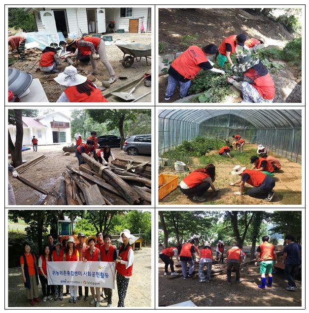 충북 괴산군 청천면 일대는 기습적인 폭우로 극심한 피해를 입은 곳이다. 이곳에 위치한 귀농인 농가를 직접 찾아가 주민들의 아픔을 위로하고 침수 가구 청소, 수목제거 등 주변정비와 피해시설 복구지원 활동에 나섰다.