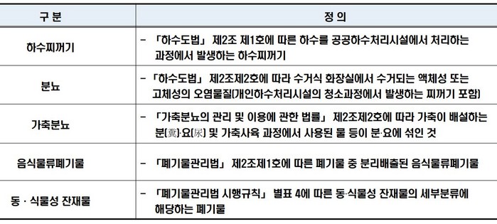 현재 대상시설은 음식물류폐기물, 가축분뇨, 하수찌꺼기, 분뇨, 기타(동식물성잔재물 등) 유기성 폐자원을 2종 이상 통합해 바이오가스화 처리 시설을 구축하고 있다.