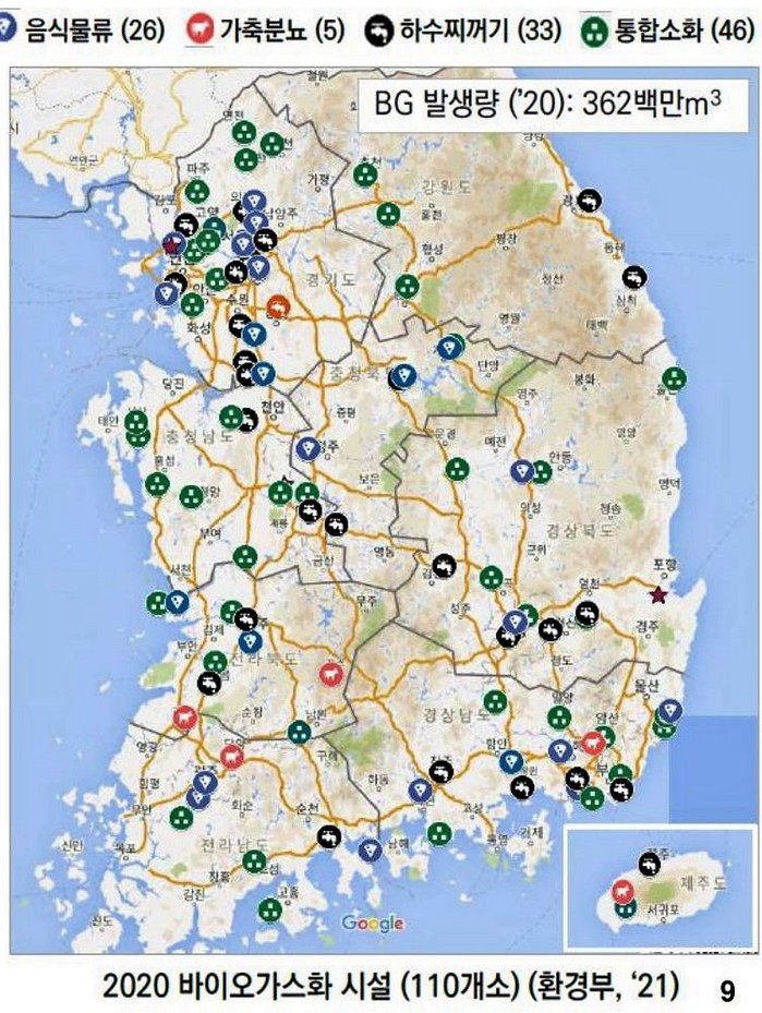 서산시에 이어 한국환경공단은 서울(난지) 통합 바이오가스화 시설을 26년까지 추진중이다. 사업규모는 하루 350톤(음식물류폐기물 300, 농축분뇨 50) 처리해 바이오가스 생산량은 하루 약 45,000 N㎥ 정도다.