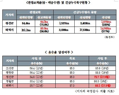 [환경데일리 정유선 기자]상수관망 사업 목표치에 도달하지 못한 가운데 공사전보다 유수율이 더 떨어지는 이상한 공사가 일어났다.