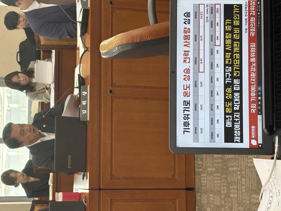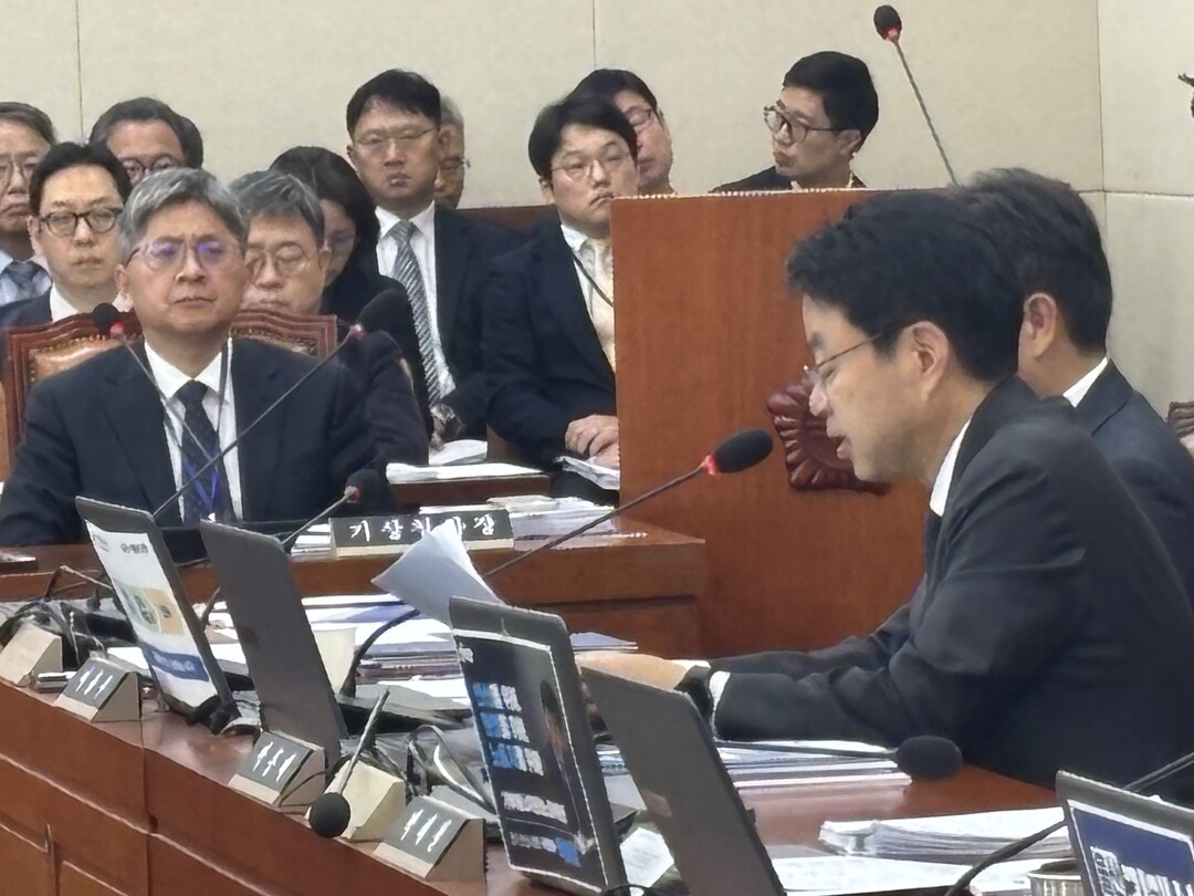 박홍배 의원(더불어민주당) 대기오염 물질 측정 과정에서 발생하는 안전사고에 대해 철저한 대책과 예산을 마련해야 한다고 주문했다.김위상 의원(국민의힘)김성환 기후에너지환경노동부장관은 기후대응댐, 고준위 방사선 폐기물처리장 건립 지연문제 등을 질의했다.기후에너지환경부 이호현 제1차관, 금한승 제2차관, 김성환 장관이 질의에 경청하고 있다.