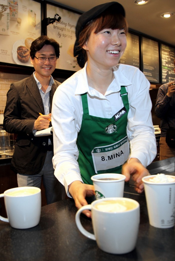스타벅스는 장애인이 서비스직에 부적합하다는 사회적 편견을 깨고 2007년부터 장애인 채용을 시작해, 2012년에는 한국장애인고용공단과 고용증진 협약을 체결하고 체계적인 장애인 바리스타 양성을 위한 직업훈련에 앞장서고 있다.