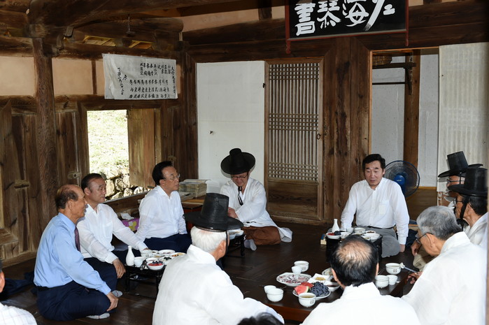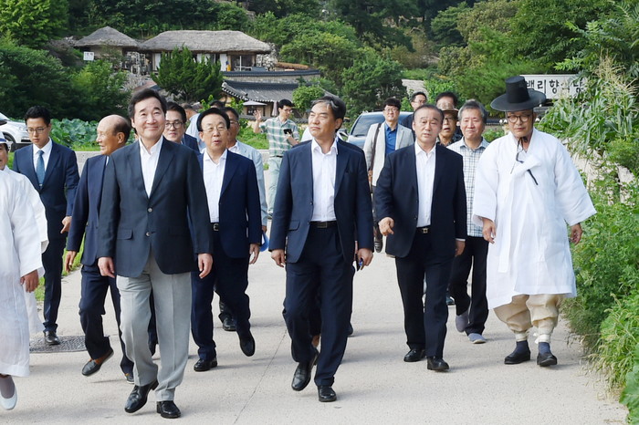 총리는 이어 마을전체가 유네스코 세계유산인 양동마을을 찾아 서백당 손성훈 종손과 무첨당 이지락 종손의 안내로 마을을 둘러봤다.