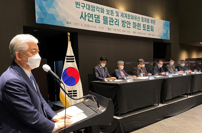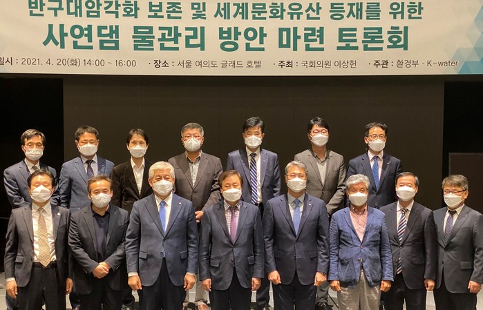 20일 국회 문체위 소속 이상헌 의원(울산 북구)과 환경부와 K-water는 여의도 글래드 호텔에서 열린 토론회에서 '반구대 암각화 보존 및 세계 문화유산 등재를 위한 사연댐 물관리 방안 토론회'에서 "수문 설치를 통한 수위 조절이 최적방안"이라는데 의견이 모아졌다.
