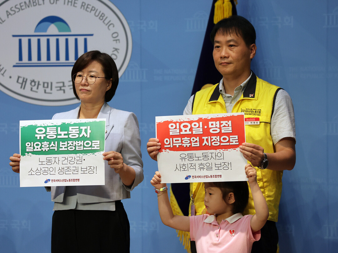 국회환노위 소속 정혜경 의원(진보당)은 25일 소통관에서 전국서비스산업노동조합연맹과 기자회견에서 '유통노동자 일요휴식 보장법'(유통산업발전법 개정안) 발의 기자회견을 진행했다.