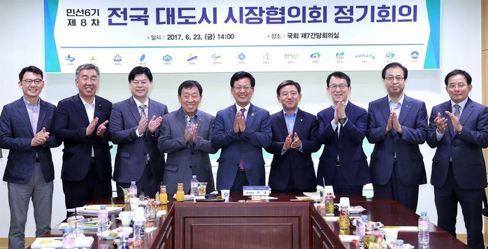 [환경데일리 이수진 기자]전국 대도시 시장협의회장을 역임하고 있는 최성 고양시장은 지난 23일 국회 의원회관에서 제종길 안산시장, 허성곤 김해시장 등 9개 도시 시장들이 참석한 가운데 개최된 '제8차 전국 대도시 시장협의회 정기회의'에서 진정한 지방자치를 위한 지방분권 및 지방재정 확충, 대도시 위상 강화 등 산적한 현안의 강력 추진을 기대하는 회원 도시들의 지지로 1년간 회장직을 연임하게 됐다.