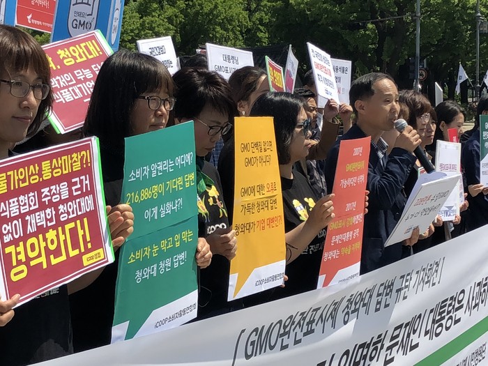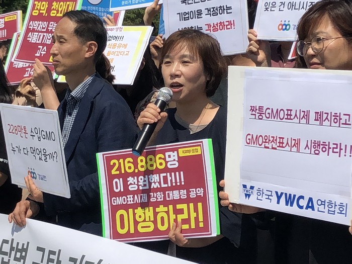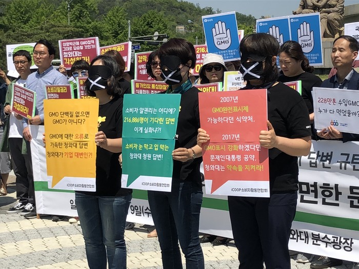 국내 먹거리 소비자 단체 57개 대표들은 앞서 3월 12일 청와대 국민청원을 통해 ▲GMO 사용 식품 GMO 표시 ▲공공급식, 학교급식 GMO 식품 사용금지 ▲Non-GMO 표시가 불가능한 현행 식약처 관련 고시 개정을 요구했다.