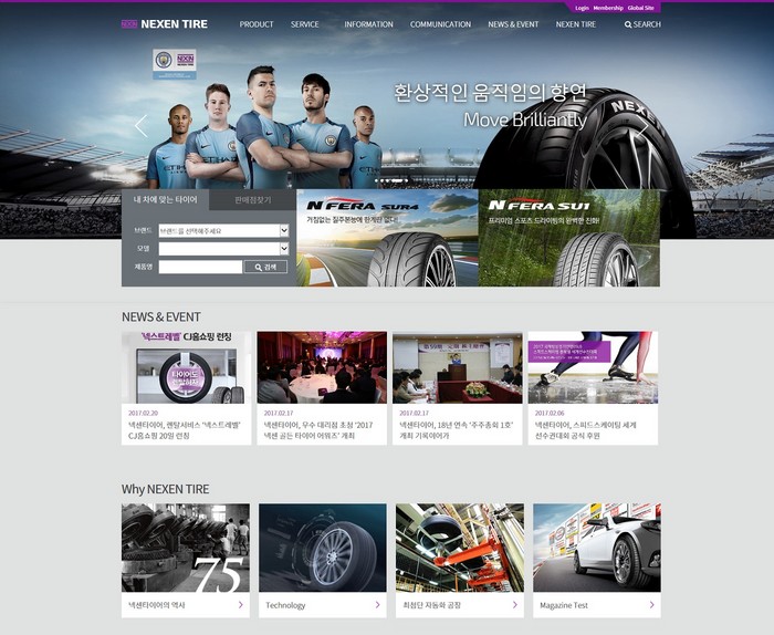 새롭게 단장한 홈페이지의 주요 특징으로는 제품별 성능지표를 한눈에 볼 수 있는 타이어 비교 기능과 방문이력에 따른 관심 제품 정보 제공, 그리고 타이어 위치 교환 알림, 가까운 대리점 안내 등의 개인별 맞춤 서비스 강화를 들 수 있다.