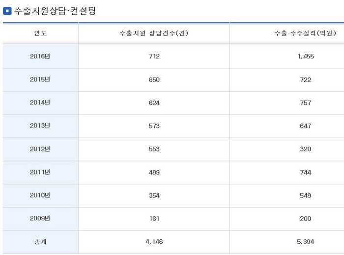 2013년부터 시작된 해외진출 컨설팅 지원 프로그램은 지난 5년간 총 5818억원의 수출 지원, 총 3289건의 해외진출 전문컨설팅 성과를 거뒀다.