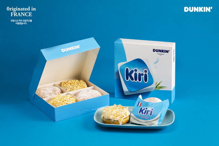 던킨도너츠는 지난 3월 프랑스 대표 크림치즈 브랜드 '끼리(Kiri)'와 손잡고 이달의 맛 도넛을 선보였다. 신제품은 도넛 속을 '끼리(Kiri) 크림치즈'로 가득 채워 부드럽고 고소한 풍미를 자랑하며, 치즈의 향과 맛을 풍성하게 즐길 수 있는 것이 특징이다.