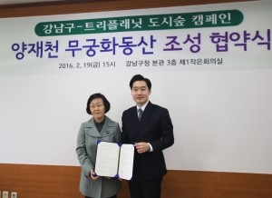 이번 협약은 강남구 내 도시숲 조성 활성화를 목적으로 체결되었으며, 트리플래닛의 숲 조성 크라우드펀딩 사이트를 통해 양재천 무궁화 숲길 조성 캠페인이 다음 달부터 진행될 예정이다.