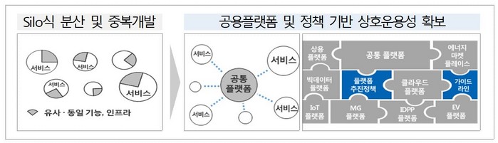 전사적인 역량을 집중시키기 위한 거버넌스 체계 정립, 플랫폼 정책 수립, 개별시스템 중복도입 예방을 위한 상호운용성 기술 가이드라인 제정과 이에 기반한 단계별 공용플랫폼 기술개발을 지난해부터 추진하고 있다.
