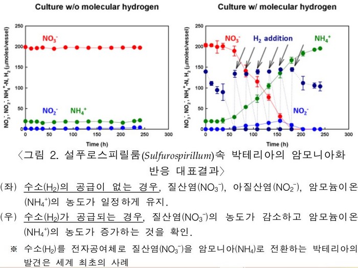 연구진은 이번에 분리한 박테리아 종이 국내외 최초로 자연환경 조건에서 별도의 유기물을 공급하지 않아도 수소 기체로 호흡(혐기성 미생물)해 질산염을 암모늄이온(NH4+)으로 전환할 수 있는 것으로 확인했다.